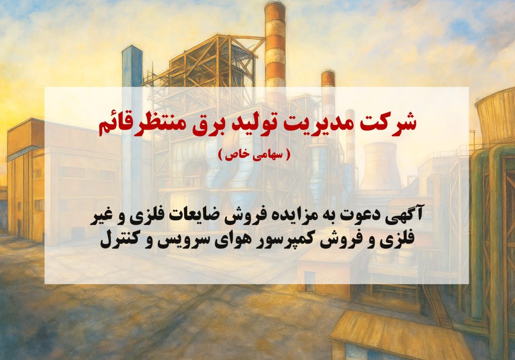 مزایده عمومی فروش یک دستگاه کمپرسور هوای سرویس و دو دستگاه کمپرسور هوای کنترل و سایر ملحقات نیروگاه منتظر قائم