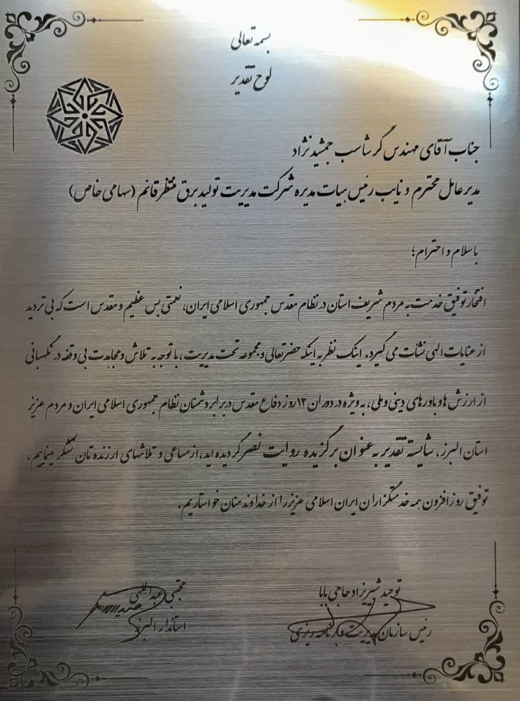 نیروگاه شهید منتظر قائم، برگزیده روایت نصر در جشنواره شهید رجایی ۱۴۰۴ استان البرز